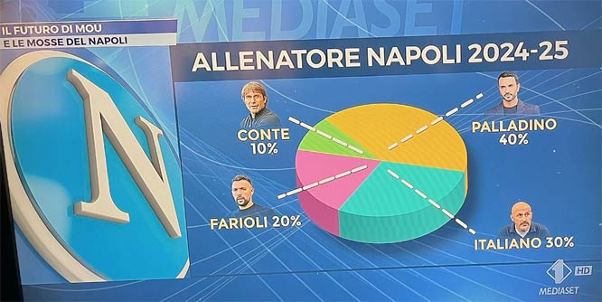 Allenatore Napoli 2024-2025, le percentuali di Mediaset: 4 nomi in ballo (GRAFICO)