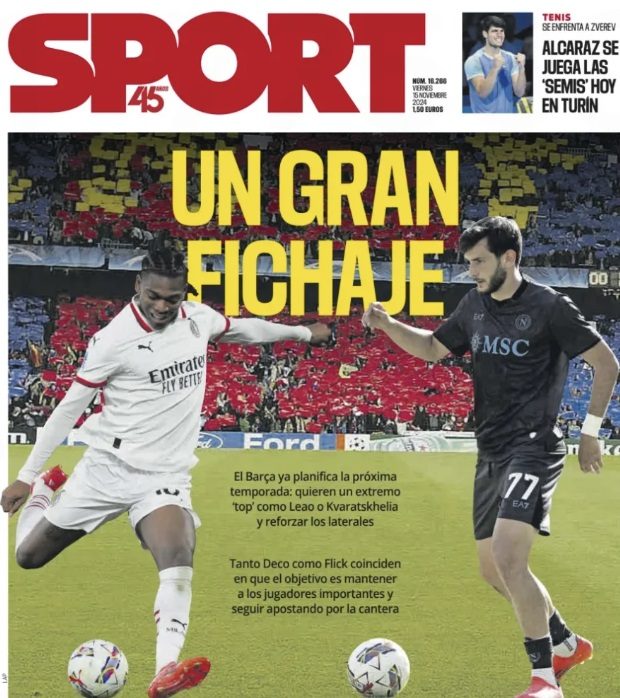 "Dall’Italia è stato rivelato che il Barça ha parlato con l’entourage di Kvaratskhelia (Napoli). Kvaratskhelia guadagna 1,5 milioni di euro e vuole un congruo aumento. Il Psg ci ha provato. Portarlo fuori dall’Italia sarà complicato. A favore gioca che l’ala georgiana sarebbe felice di atterrare a Barcellona, dove crede di poter vincere titoli importanti. In questa breve lista c’è anche Rafa Leao, che piace molto a Joan Laporta e per il quale i tentativi erano già stati fatti la scorsa estate. Jorge Mendes sta cercando di mediare un’operazione che sembra fattibile perché il Milan è un club che vende, ma il problema è il prezzo. Nico Williams è ancora sulla lista-la sua clausola rescissoria è attualmente di 65 milioni di euro. Nella lista dei possibili estremi, il club analizza anche opportunità di mercato a costo zero come Leroy Sané, che tutto indica che lascerà il Bayern alla fine del suo contratto, o Salah (Liverpool). Ci sono altri calciatori come Adeyemi (Dortmund), che vengono monitorati", ha sottolineato la testata giornalistica.
