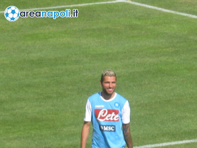Dimaro, dal nostro inviato Francesco Manno - Il nuovo acquisto del Napoli, il centrocampista svizzero ex Fiorentina, Valon Behrami, posa per i fotografi nel corso del riscaldamento della prima amichevole stagionale del Napoli, contro la rappresentativa locale del Trentino Team.