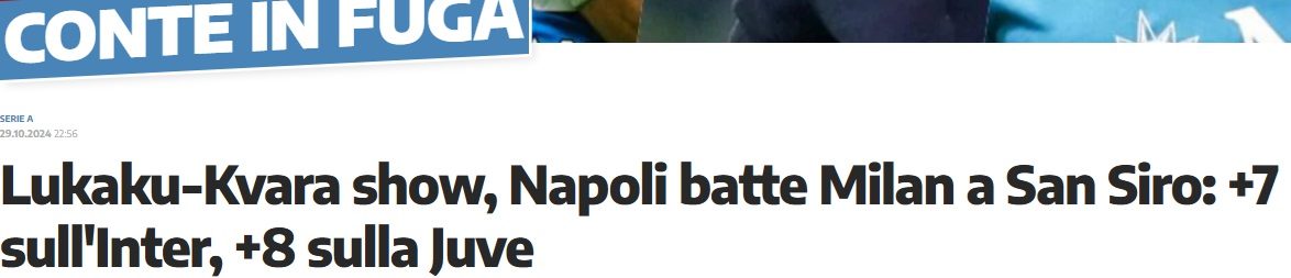 "Gli azzurri hanno sbloccato il risultato al 5' minuto di gioco con la rete di Lukaku e poi hanno trovato il raddoppio poco prima dell'intervallo con il gol di Kvaratskhelia. A inizio ripresa, invece, un gol annullato a Morata per posizione di fuorigioco. Nel finale c'è spazio per l'ingresso in campo di Camarda ma il risultato non cambierà più. Terza sconfitta in campionato per il Milan, che rimane a quota 14 punti", ha sottolineato il giornale torinese.