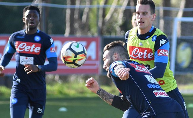 Seduta mattutina per il Napoli a Castelvolturno. Gli azzurri preparano il match contro l'Inter a San Siro per il posticipo della 28esima giornata di Serie A in programma domani sera alle ore 20,45. La squadra ha svolto attivazione e successivamente esercitazioni atletiche. Di seguito partitina a campo ridotto. Chiusura con lavoro tecnico tattico. Differenziato per Chiriches che non sarà del match così come Ghoulam. Nel pomeriggio partenza per Milano.