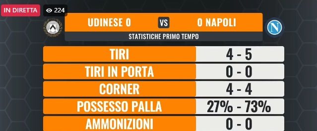 Ci vorrà un altro Napoli per venire a capo della gara nella ripresa. Magari attingendo alle giocate delle stelle della squadra, Osimhen su tutti. In basso il grafico tratto da Netweek Sport sulle statistiche della gara del Friuli.