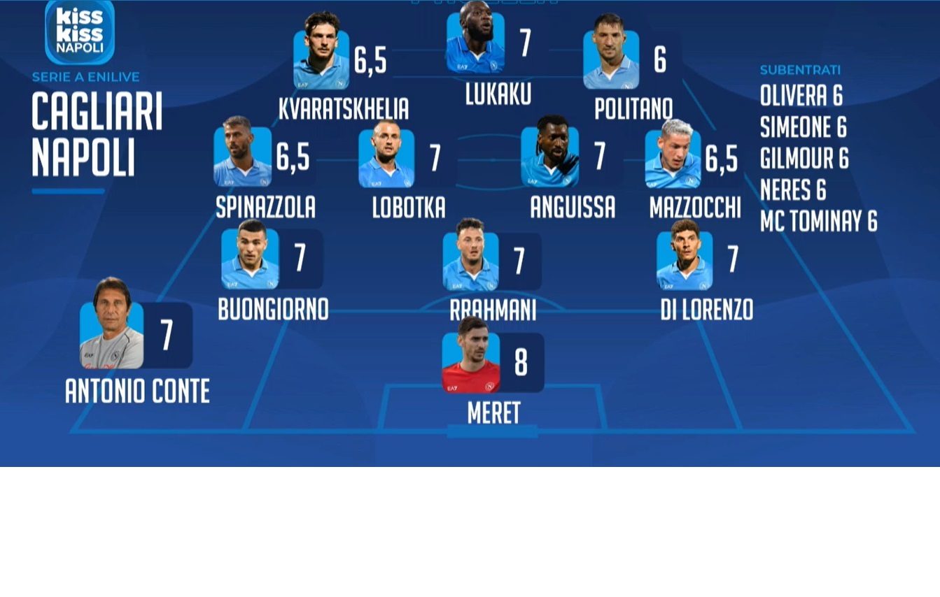 Il giornalista Paolo Del Genio, ai microfoni di Kiss Kiss Napoli, ha assegnato i suoi voti ai calciatori del Napoli: "Romelu Lukaku ha fatto molto bene e non solo per il gol. Ha fatto a sportellate con la difesa del Cagliari giocando una grande quantità di palloni. Inoltre ha confezionato un assist prezioso a Kvaratskhelia".