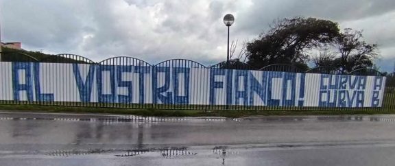 I tifosi del Napoli non lasciano sola la squadra in questo momento di oggettiva difficoltà. Questa mattina, all'esterno del training center di Castel Volturno, è apparso uno striscione a firma Curva A e B di sostegno alla squadra in vista della sfida di domani pomeriggio contro la Lazio a Roma: "Al vostro fianco!". Il popolo partenopeo, ancora una volta, si conferma il dodicesimo uomo in campo per gli azzurri di Conte.