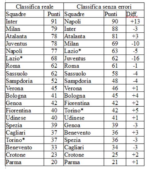 Serie A, classifica finale senza errori arbitrali. Napoli scudettato e Benevento salvo