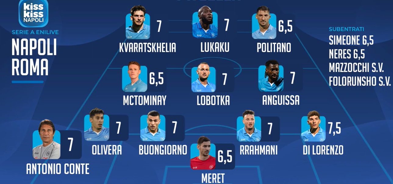 Il migliore del Napoli, per Del Genio, è stato Di Lorenzo, premiato con più che lusinghiero 7.5 in pagella. McTominay e Politano i peggiori tra i titolari o per meglio dire i "meno positivi", per entrambi 6.5 in pagella.