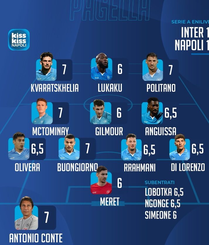Paolo Del Genio, al contrario di altri giornalisti e tifosi del Napoli, non considera negativa la prestazione di Romelu Lukaku. Il belga conquista infatti la sufficienza. Di seguito la motivazione del cronista: "A me non è dispiaciuto. Contro l'Atalanta gli avevo dato 4.5, ma con l'Inter si è mosso bene, a battagliato contro la difesa dei nerazzurri, soprattutto nella prima frazione di gioco ha fatto sicuramente delle buone cose".