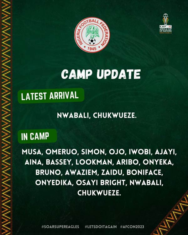 Il giocatore nigeriano del Napoli ancora non ha raggiunto i compagni della Nigeria nel ritiro di Abu Dhabi.