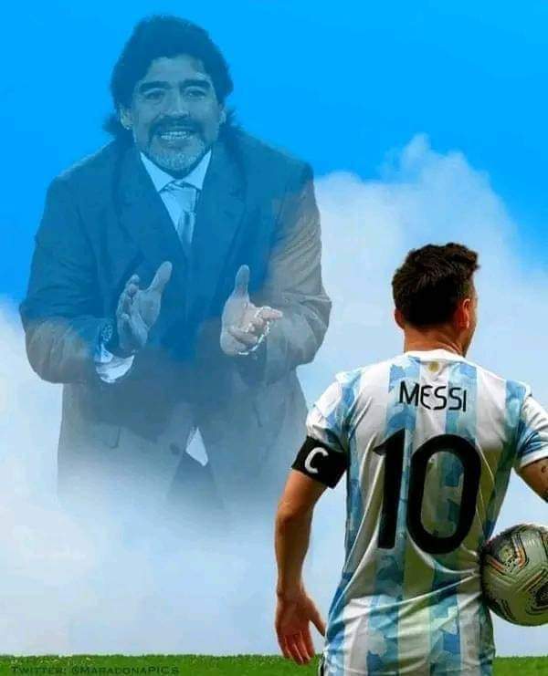 Come è noto, questo è il primo Mondiale dopo la morte di Diego Armando Maradona che era presente in Russia nel 2018 per fare il tifo per la sua Nazionale che guidò da CT in Sudafrica e da capitano, in campo, nel 1986 e nel 1990 in Italia. El Pibe de Oro ora spinge i suoi connazionali dall'alto. E poco importa se sono tantissimi coloro che si perdono nei meandri di un paragone che probabilmente non ha alcun senso. Ecco l'immagine più bella del momento.