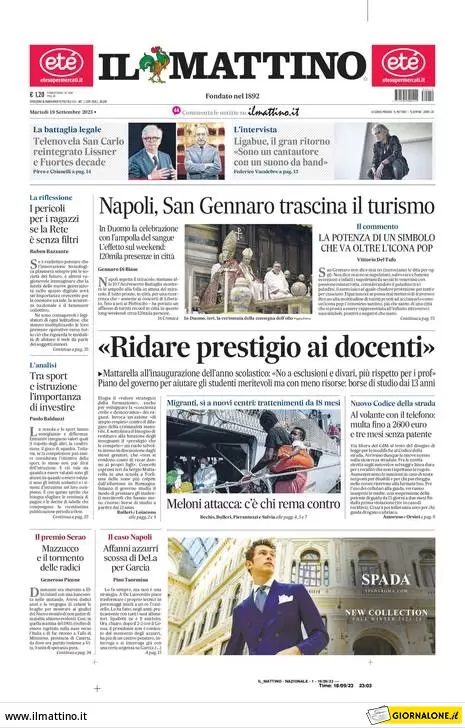 PRIMA PAGINA IL MATTINO - Il caso Napoli. Affanni azzurri, scossa di DeLa per Garcia