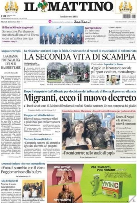 Il quotidiano Il Mattino, in prima pagina, dà spazio anche alle vicende del Napoli soffermandosi sull'attaccante Khvicha Kvaratskhelia.