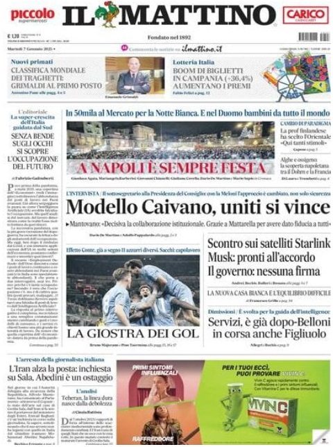 L'edizione odierna del quotidiano Il Mattino, in prima pagina, dà spazio anche al calcio soffermandosi sull'ottimo momento del Napoli in questa prima fase della stagione.