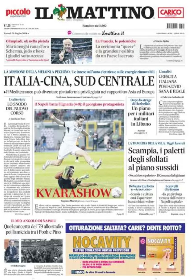 PRIMA PAGINA MATTINO - Kvara show. Il Napoli batte l'Egnatia
