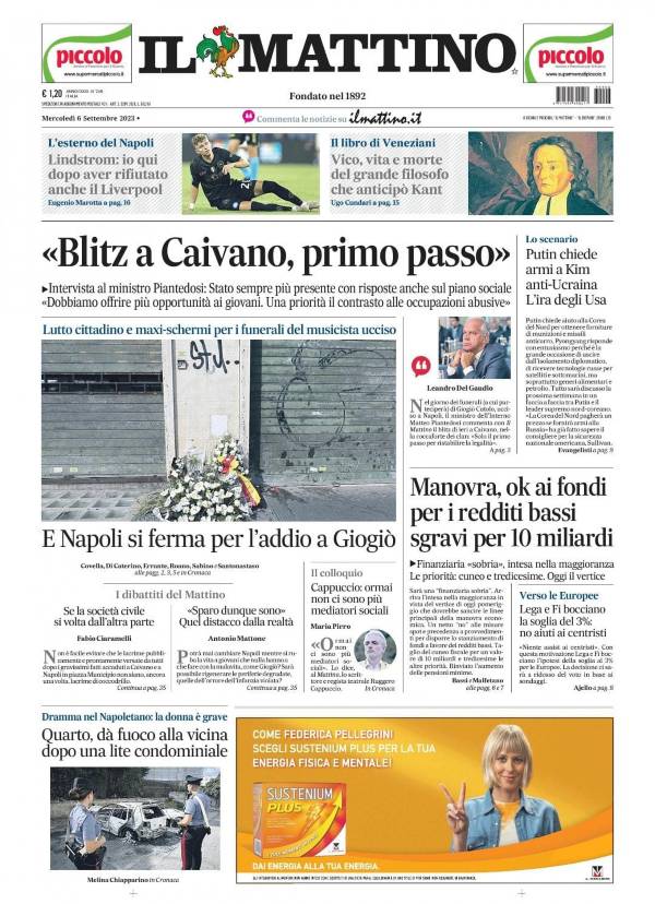 Sono tanti gli spunti che arrivano dalla prima pagina de Il Mattino. Il noto quotidiano si sofferma su alcuni degli argomenti più caldi del momento. Ecco alcuni titoli dell'ultima edizione: "Lindstrom: io qui dopo aver rifiutato anche il Liverpool", si legge nel trafiletto dedicato allo sport.