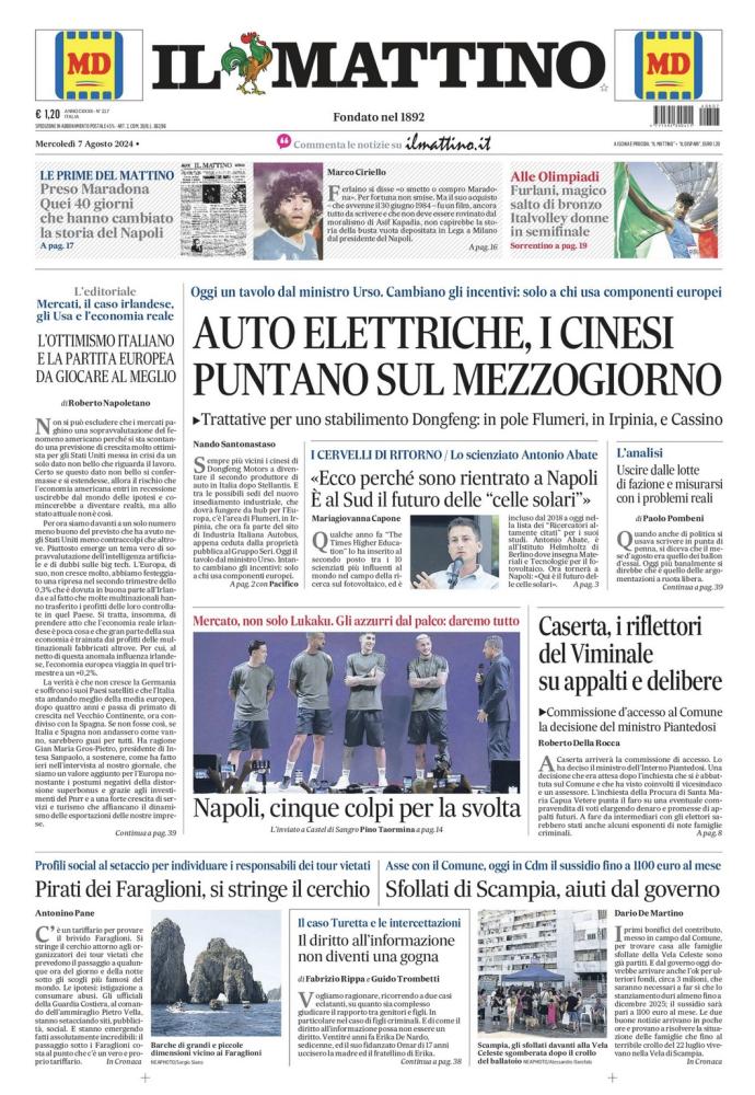 Sono tanti gli spunti che arrivano dalla prima pagina de Il Mattino. Il noto quotidiano si sofferma su alcuni degli argomenti più caldi del momento. Ecco alcuni titoli dell'ultima edizione: "Napoli, cinque colpi per la svolta. Mercato, non solo Lukaku. Gli azzurri dal palco: daremo tutto" si legge nello spazio dedicato allo sport.