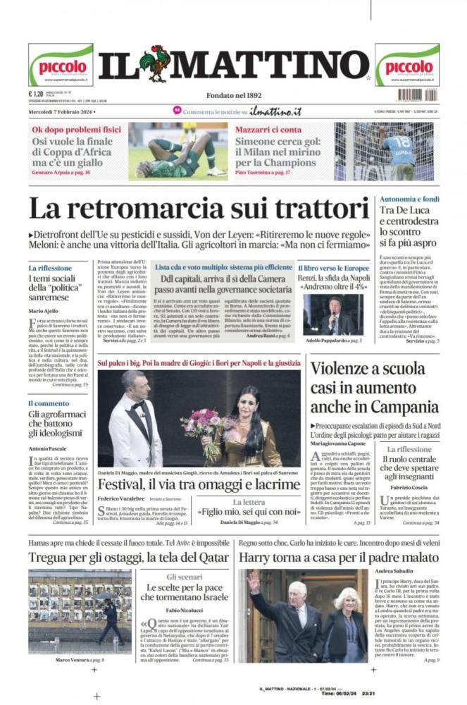Sono tanti gli spunti che arrivano dalla prima pagina de Il Mattino. Il noto quotidiano si sofferma su alcuni degli argomenti più caldi del momento. Ecco alcuni titoli dell'ultima edizione: "Osi vuole la Finale di Coppa d'Africa, ma c'è un giallo. OK dopo problemi fisici". E ancora: "Mazzarri ci conta. Simeone cerca gol: il Milan nel mirino per la Champions".