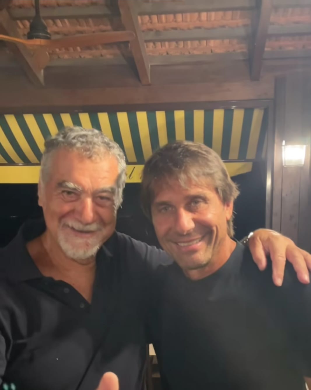 Antonio Conte è apparso molto sorridente, come si vede anche nell'immagine pubblicata dallo stesso ristorante sui social network: