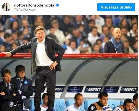 Alfonso De Nicola, ex medico sociale del Napoli (in carica anche durante il periodo di Walter Mazzarri) ha rilanciato una vecchia fotografia su Instagram (è in panchina insieme a Santoro, proprio alle spalle del nuovo tecnico dei partenopei). E ha commentato: "Non ce la faccio, troppi ricordi" (la battuta famosa di Giovanni del trio con Aldo e Giacomo, ndr). Io direi la stessa cosa oggi, parafrasando queste parole. Ebbene sì, la foto condivisa da Decibel Bellini mi ha riportato indietro nel tempo. Inevitabilmente".