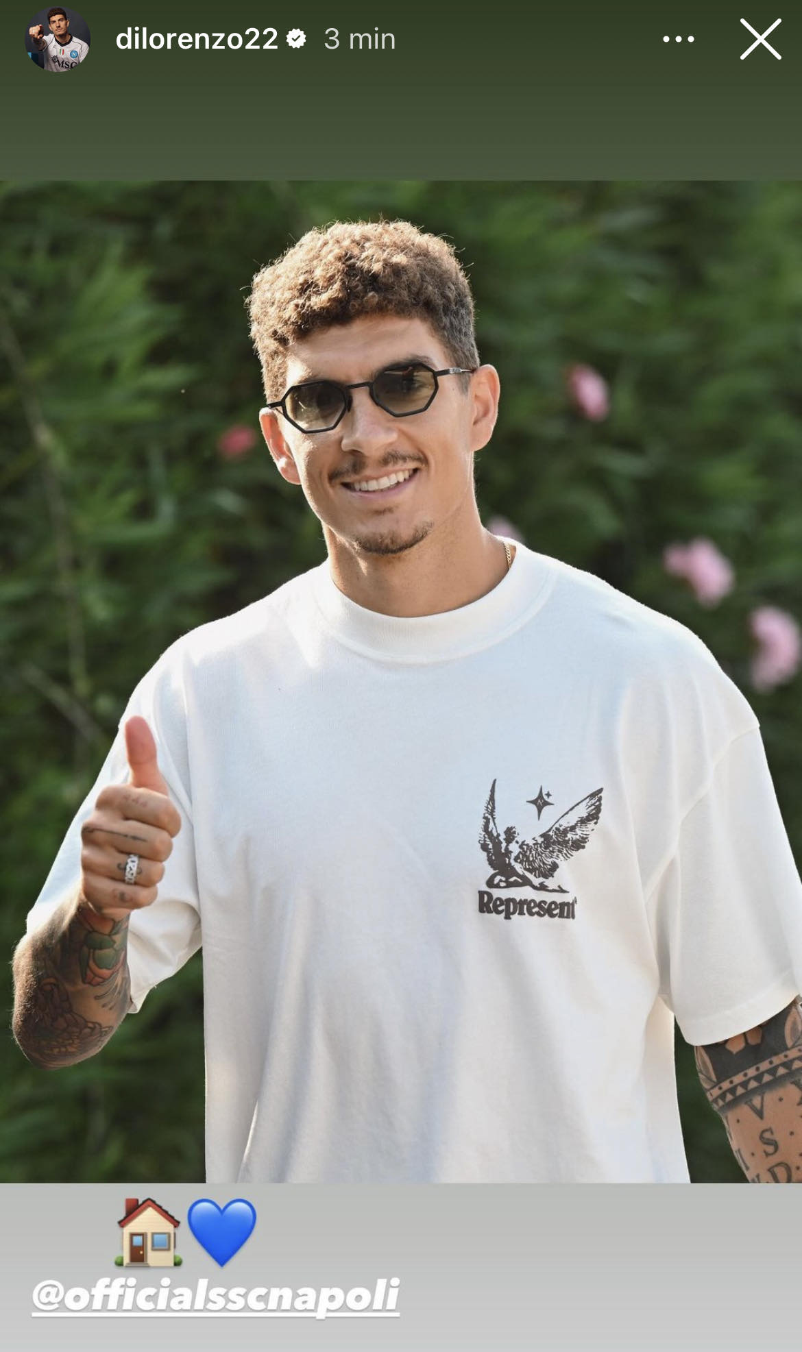 Il Di Lorenzo 2.0 è iniziato. Il capitano del terzo scudetto dopo la querelle estiva che lo ha visto protagonista e ad un passo dall'addio, è finalmente tornato a Castel Volturno. Il terzino destro si è radunato quest'oggi nel centro tecnico del club azzurro ed è apparso molto sorridente di fronte ai fotografi che lo hanno immortalato all'entrata del training center dei partenopei. Il giocatore ha poi postato l'immagine sui suoi canali social con tanto di pollice alzato ed emoticon che ritraggono una casa e un cuore azzurro, compreso il tag alla SSC Napoli.