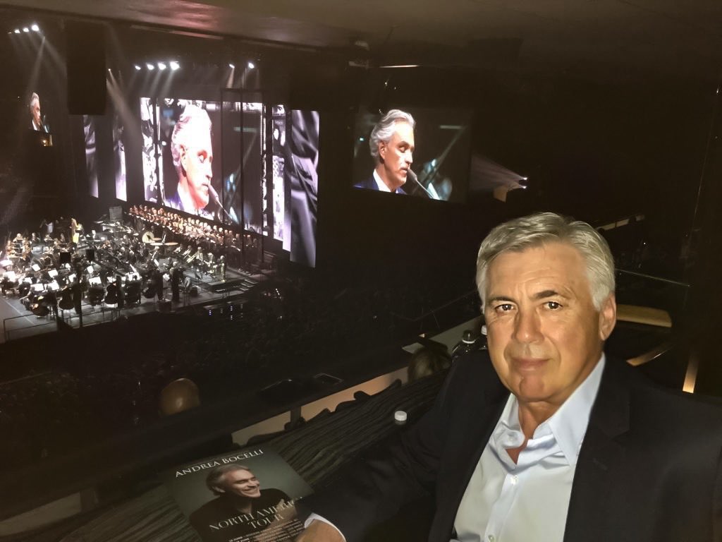FOTO - Ancelotti si rilassa: "Ho assistito ad una grandissima performance di Andrea Bocelli"