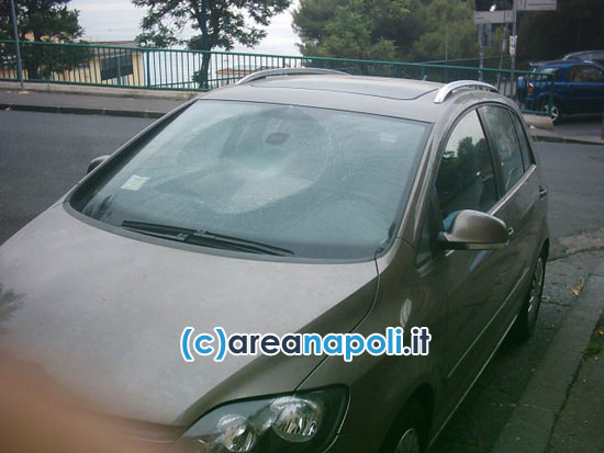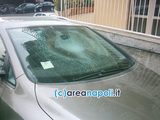 Nella notte tra sabato e domenica danneggiata l'auto di Pazienza. Ecco le foto dell'auto danneggiata scattate in anteprima dalla redazione AreaNapoli.it.