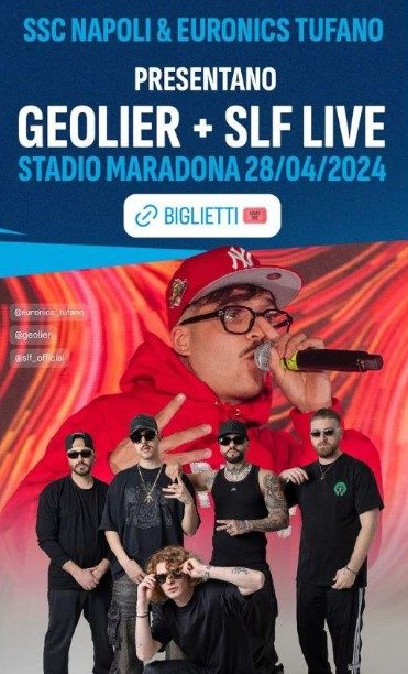 Attraverso una story del profilo Instagram ufficiale della SSC Napoli, è arrivato l'annuncio: domani i tifosi partenopei potranno godersi un momento di musica allo Stadio Diego Armando Maradona. In occasione di Napoli-Roma il rapper napoletano Geolier - tra i protagonisti all'ultimo Festival di Sanremo (è arrivato secondo alle spalle di Angelina Mango tra infinite polemiche per il televoto) si esibirà in un live con la SLF (collettivo musicale campano composto da Lele Blade, MV Killa, Vale Lambo e Yung Snapp).