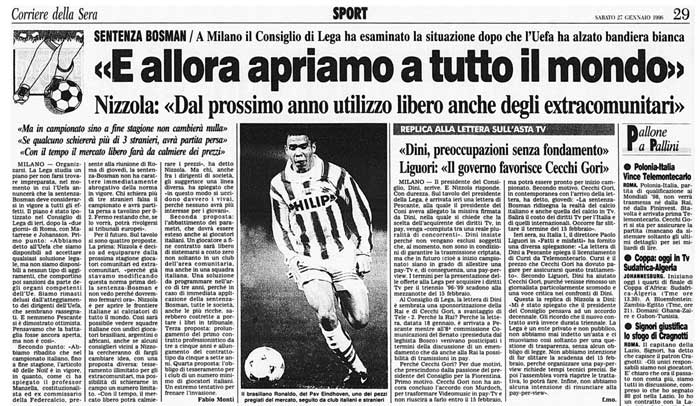 La “libera circolazione” fece ovviamente cadere anche il tetto al numero degli stranieri in rosa (ad eccezione degli extracomunitari, limite tuttora vigente).