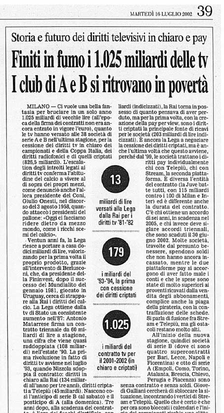 Negli anni 90 gli introiti cominciavano ad aumentare grazie all’avvento delle pay tv, ma il calcio restava ancora in crisi, sostenuto o dai mecenati di turno o da artifizi contabili.