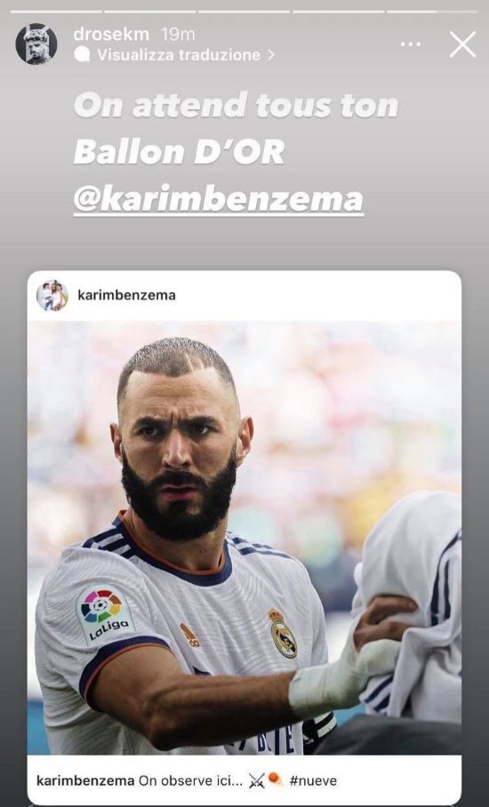 Tra l'altro, ha pubblicato una foto con dedica: "Aspettiamo il tuo Pallone d'Oro", inserendo in primo piano l'immagine dell'attaccante del Real Madrid. Tuttavia, è difficile che Benzema possa ottenere questo premio ambito, vista la folta concorrenza. Anche se, nella scorsa stagione, la punta francese ha fatto un campionato da record. È stato, però, inserito nella lista dei candidati.