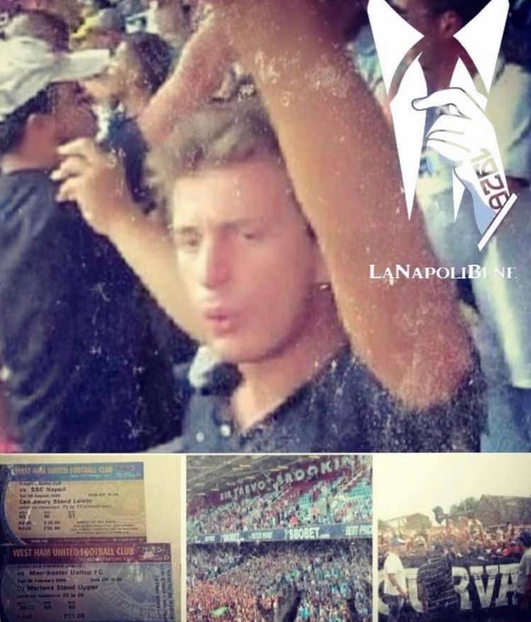 "Dovettero impegnarsi parecchio per indirizzarci all’ingresso della metro di Upton Park dove si verificarono nuovi scontri tra Naples, Hammers e Bobbies. Una volta fattici entrare in stazione e partiti, gli amici di Upton Park ci tennero a reiterare i saluti così che per le prime due fermate fummo investiti da un fitto lancio di pietre che spaccarono i vetri dei vagoni e qualche testa. Ma stica**i. In metro si parlava solo di Quagliarella, del Napoli, di quel ca**o di pigiama grigio con cui scendemmo in campo e di quanto fosse bello seguire quella maglia in qualsiasi parte del mondo, in qualsiasi stagione, in qualsiasi momento. Le immagini che vi mostro sono tutte riferite a quel giorno ed è proprio al ragazzo della foto che dedico questo post, un ragazzo che avrebbe meritato di essere con noi ancora, ancora e ancora. Ma in fondo è come se non se ne fosse andato mai. Ciao Cirù".