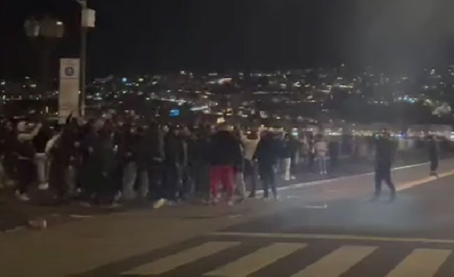Tifosi Napoli fuori hotel del Milan: fumogeni, botti e cori (VIDEO)